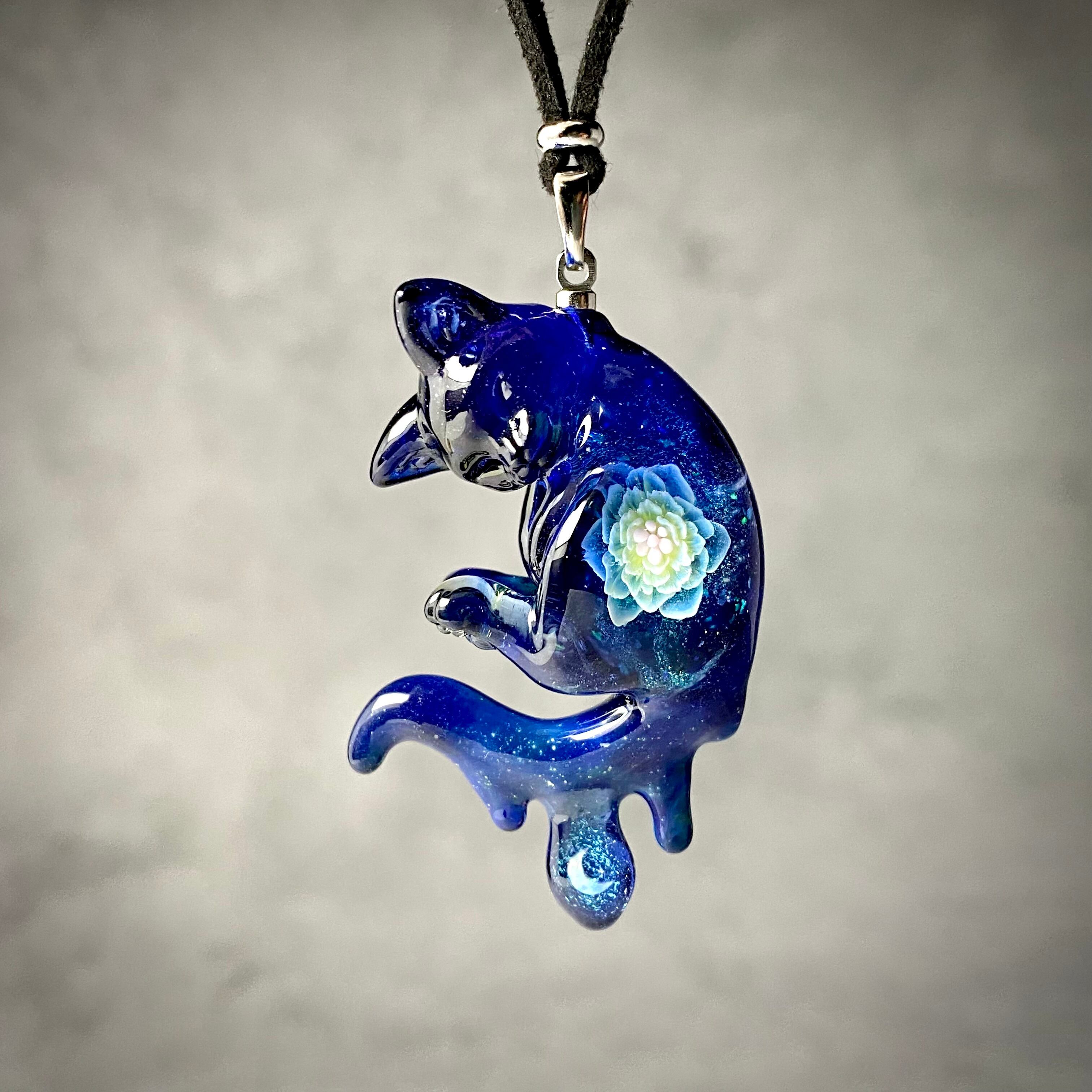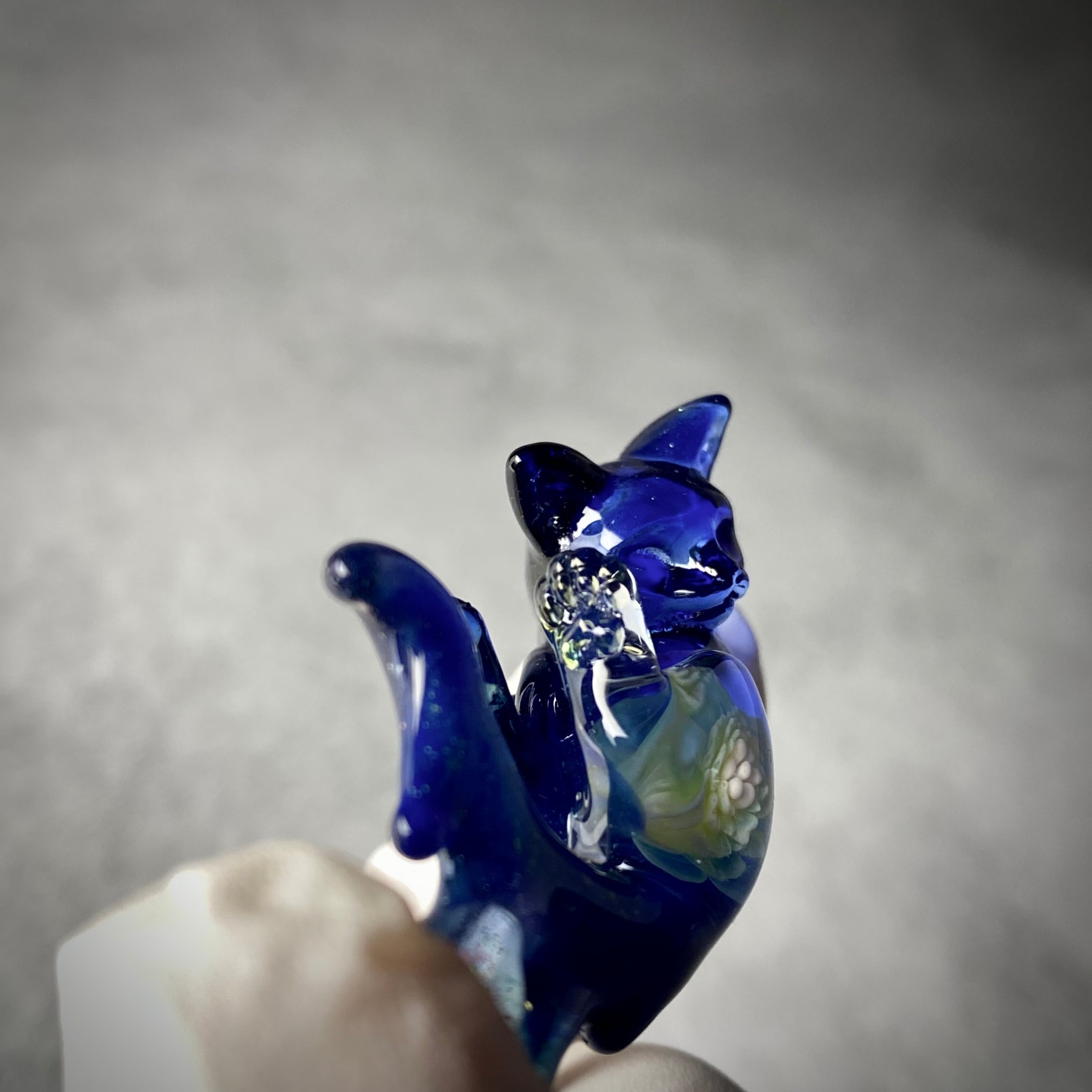 立体的な花模様は細いガラスを使い花弁を描き溶かし込んで形成していく技法を用いて全て手作業で制作しています。
