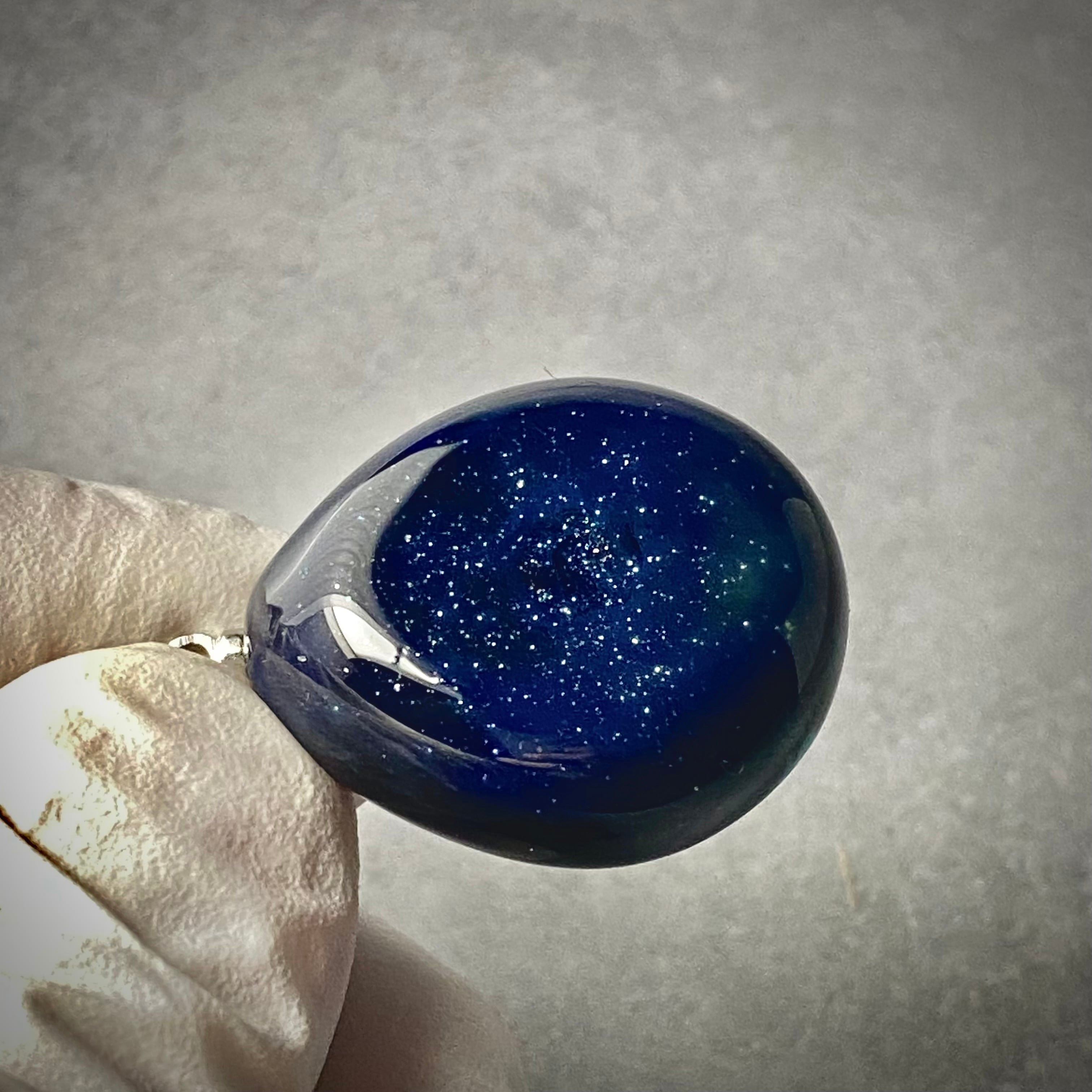 雫型のガラスの中に立体的な模様が入っているペンダントです。