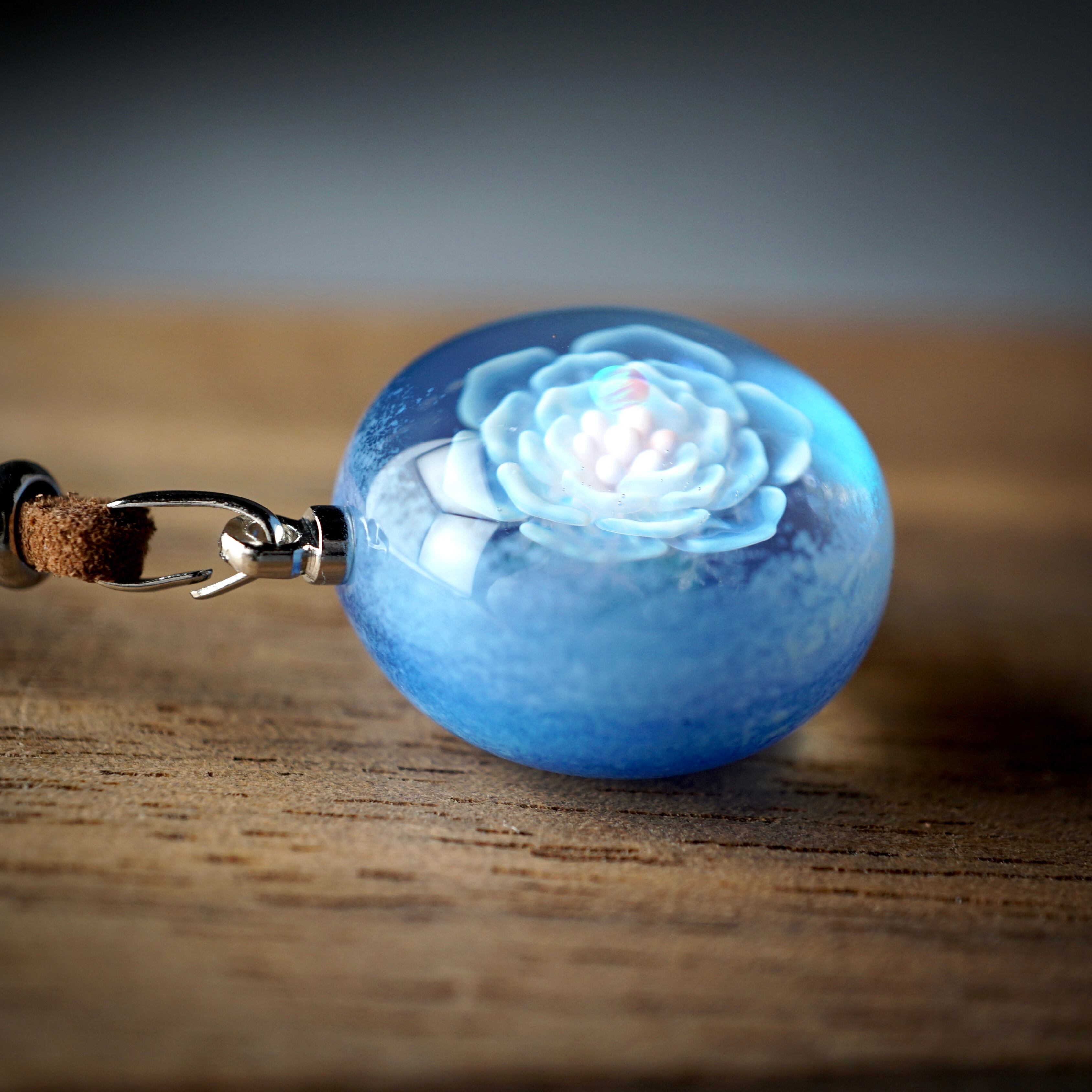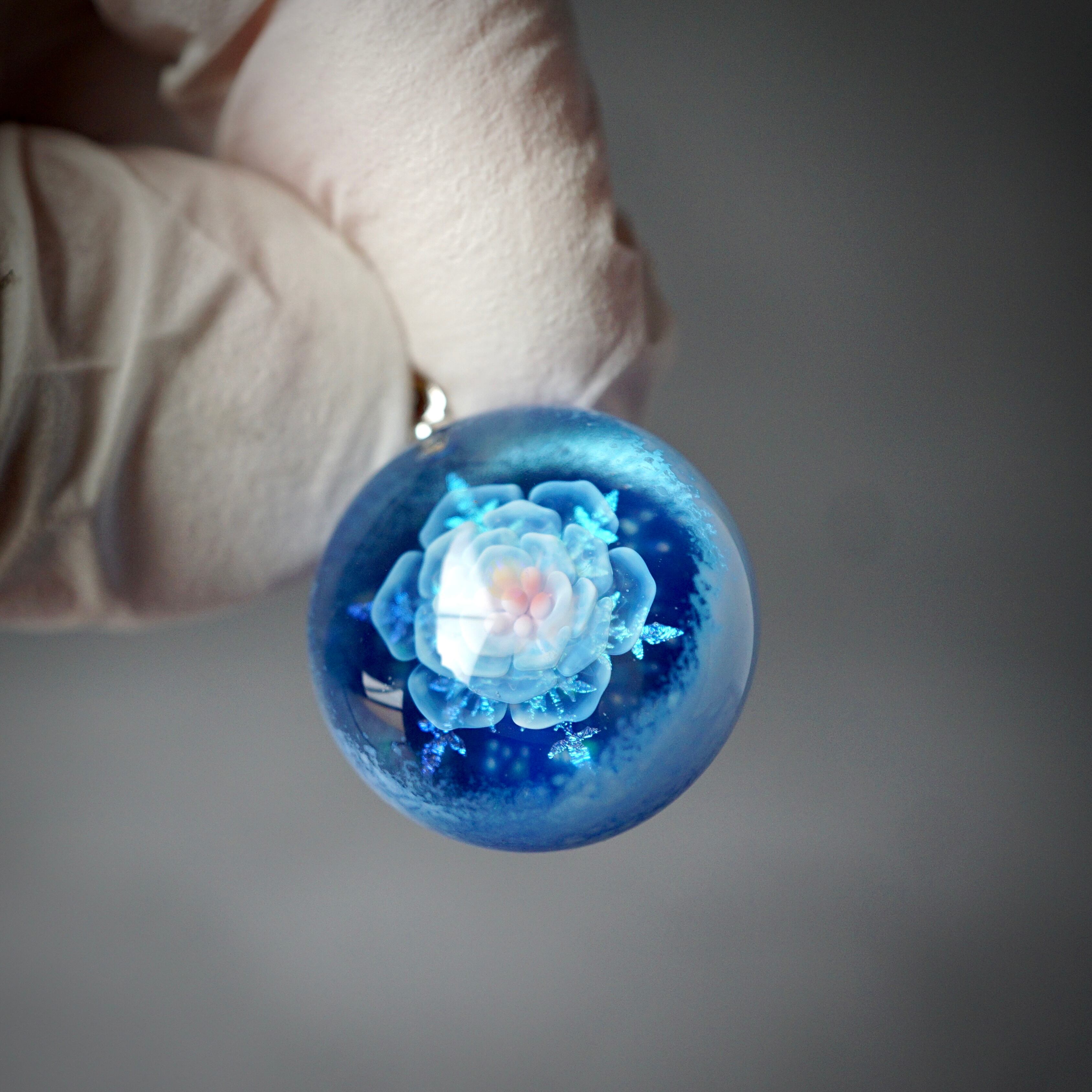 氷や花などを題材に自然の美しさをガラスの中に表現したペンダントです。