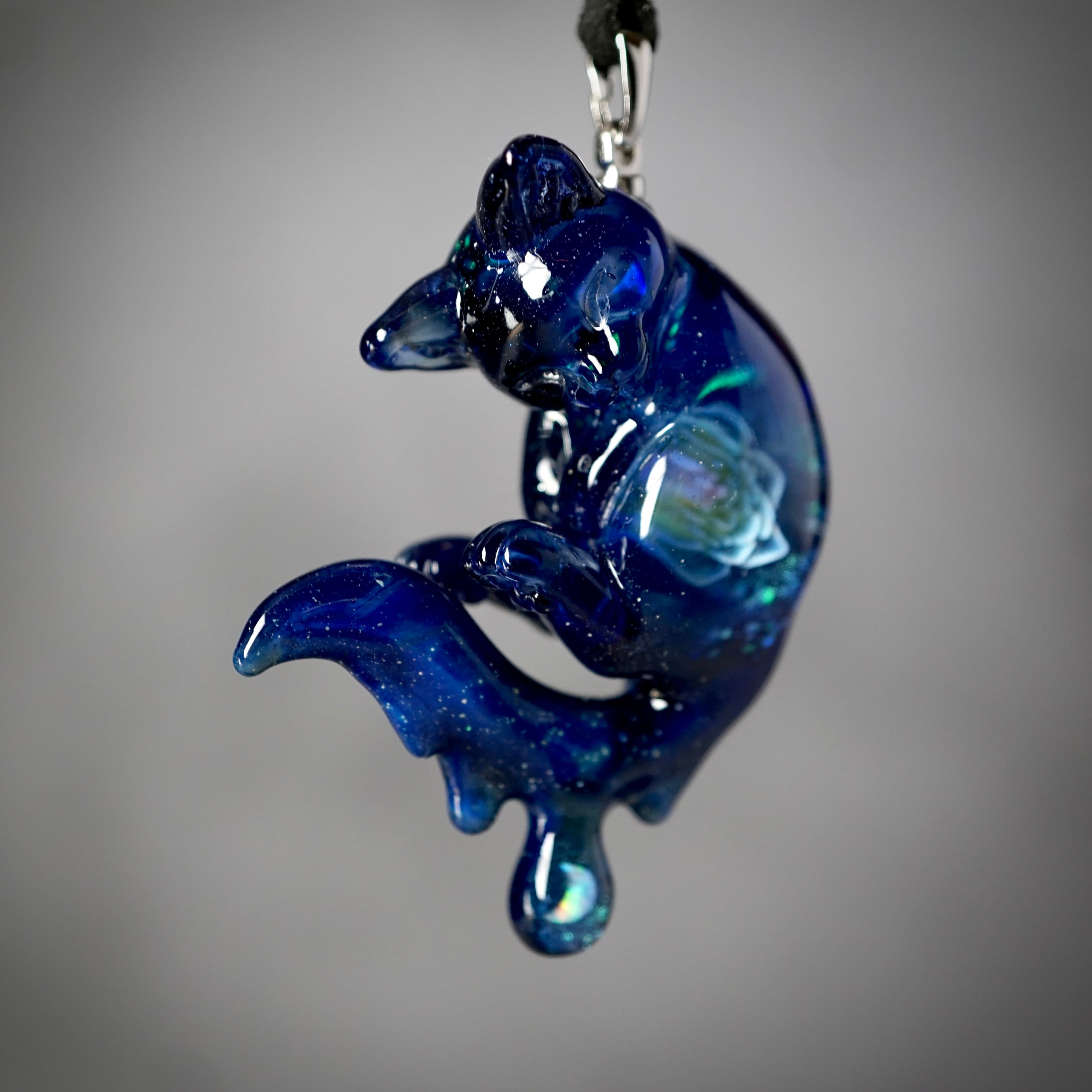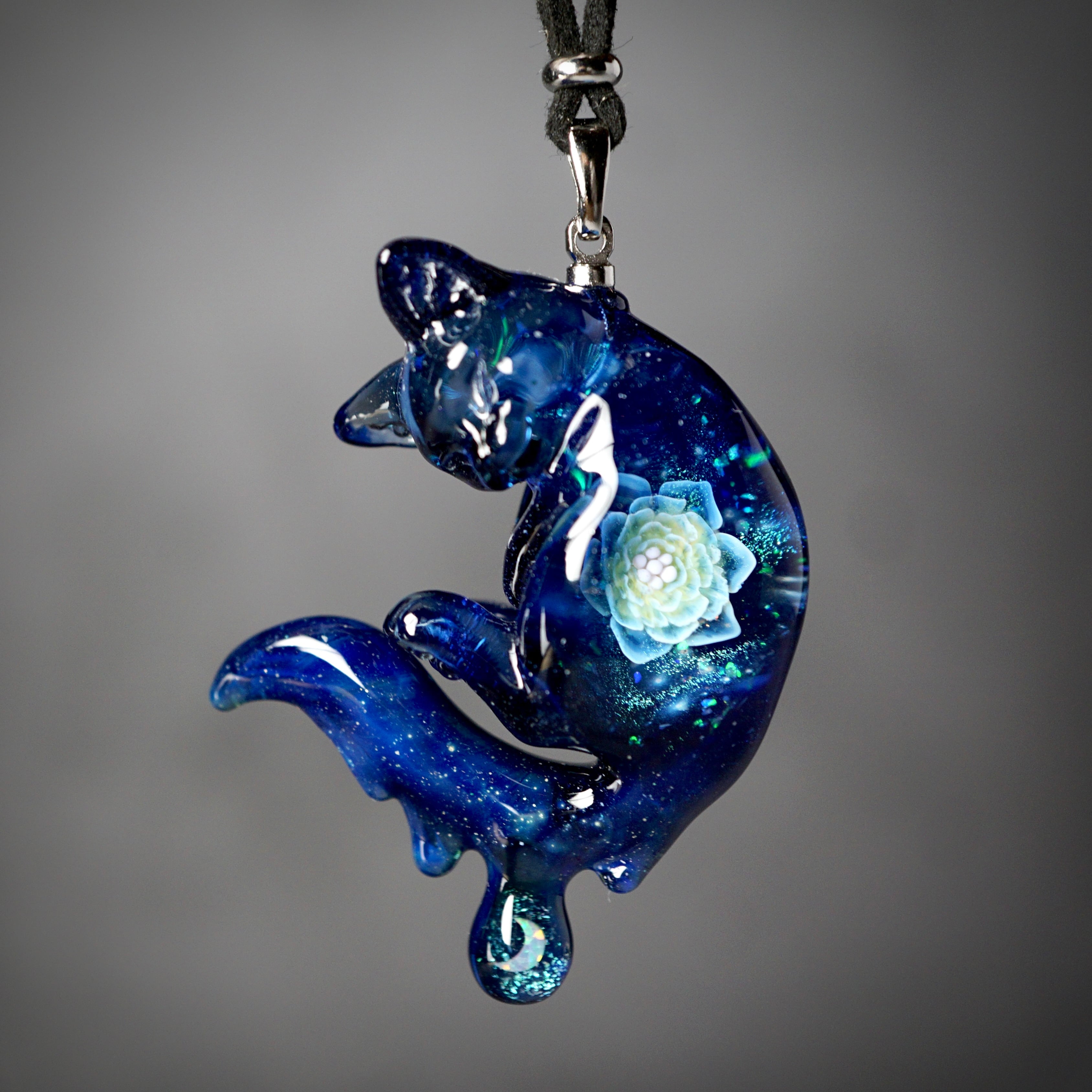 星空のような神秘的な青い猫のペンダントです。