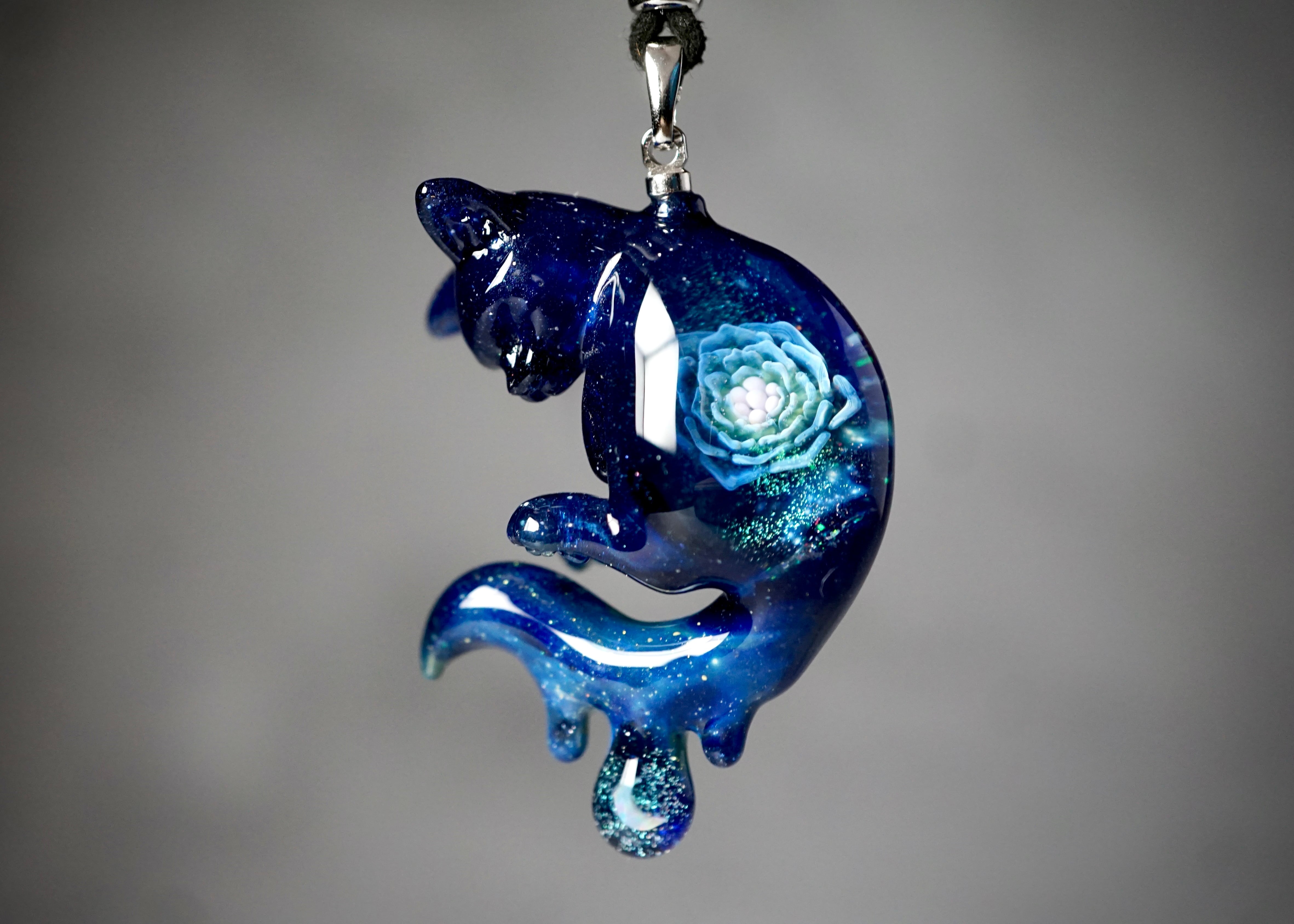 立体的な花模様は細いガラスを使い花弁を描き溶かし込んで形成していく技法を用いて全て手作業で制作しています。